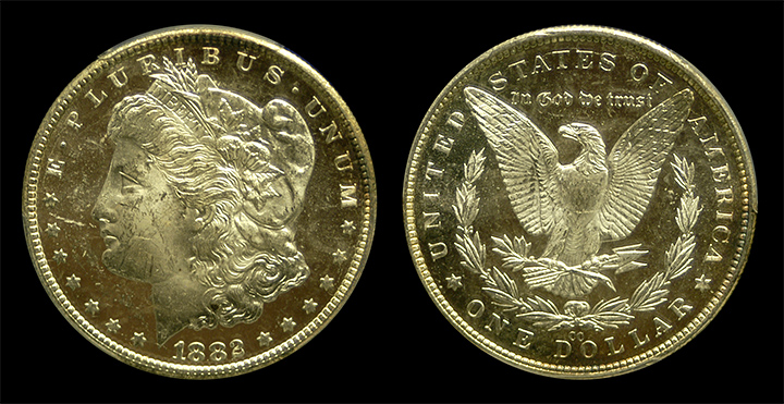 1882-CC Morgan Silver Dollar PCGS Dmpl MS-64