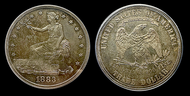 The 1883 Trade Dollar, minted during the height of the American silver trade era, represents a significant period in U.S. history. The Trade Dollar was initially intended for commerce with Asia, reflecting America's economic ambitions in the late 19th century. These coins are celebrated for their limited production and historical significance, enhancing their collectible value.