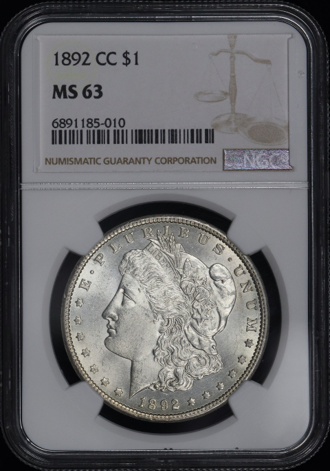 This 1892-CC Morgan is a highly desirable silver dollar in all regards and one of the toughest Carson City Morgans. Graded as uncirculated, Mint State-63 quality by NGC, it has incredible detail and eye appeal on both sides.