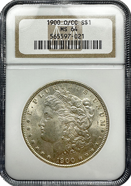 1900-O Over CC Morgan Silver Dollar NGC MS-64