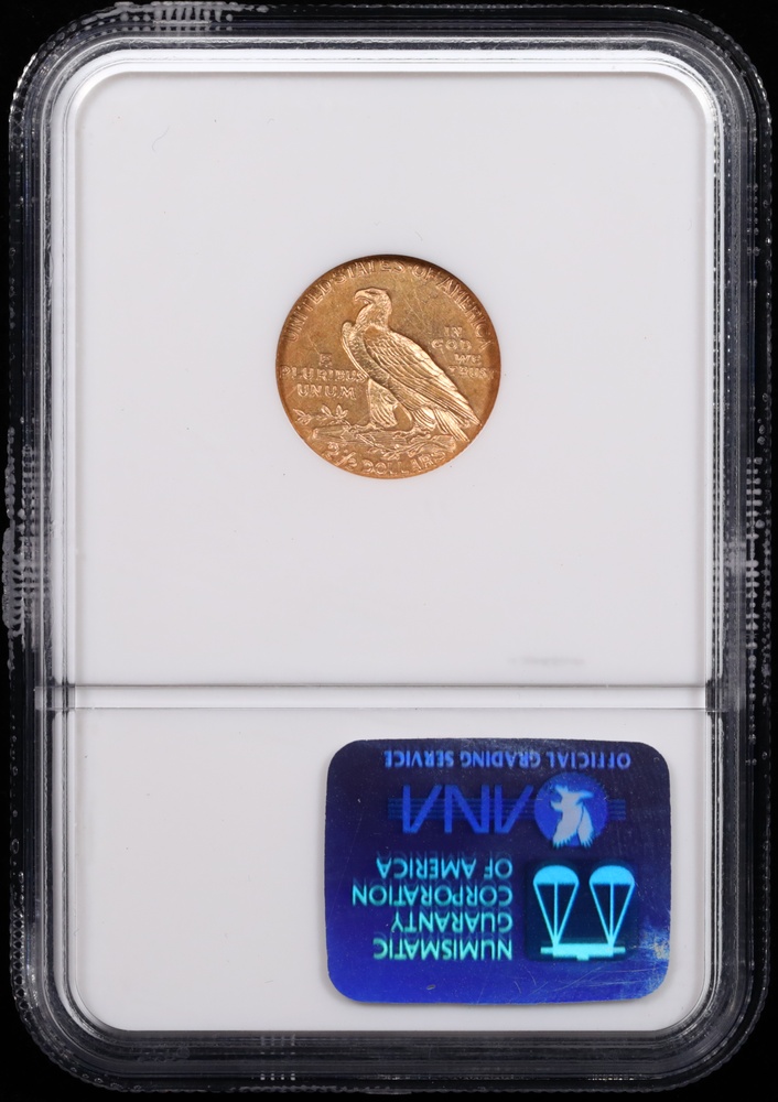 This specimen has been certified AU-58 by NGC, indicating nearly uncirculated condition with only slight traces of wear on the highest points. The coin exhibits warm golden luster with well-preserved detail throughout both the incused obverse design and the reverse eagle. The Indian Head quarter eagle series remains popular among collectors for its unique incused design and historical significance in early 20th century American coinage. The coin pictured is the exact coin you will receive.