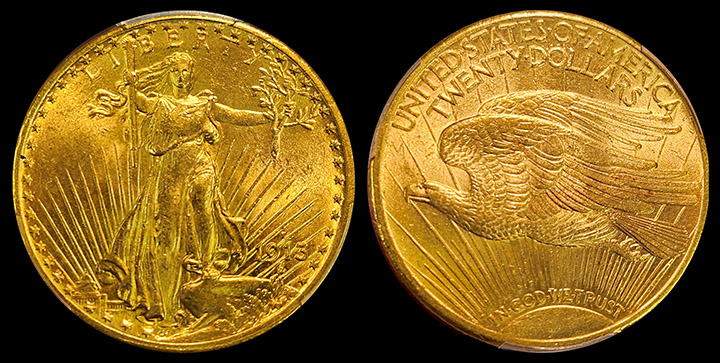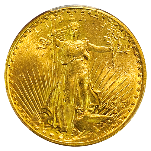 Presenting the rare and coveted 1913 San Francisco Saint-Gaudens $20 Gold Double Eagle—a coin that epitomizes the artistic excellence of early 20th-century American coinage. This is one of the absolute lowest mintages in the entire series with a mere 34,000 coins struck! Today around 3,000 of these have been certified in all grades combined, and the price more than doubles in the next grade level up. We feel owning dates like this are a solid value in today's rare coin market.