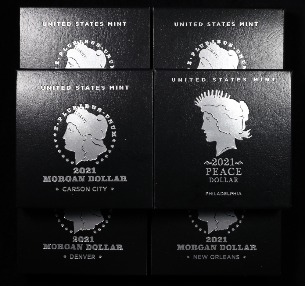 2021 Morgan and Peace Dollar Complete 6 Coin Set OGP