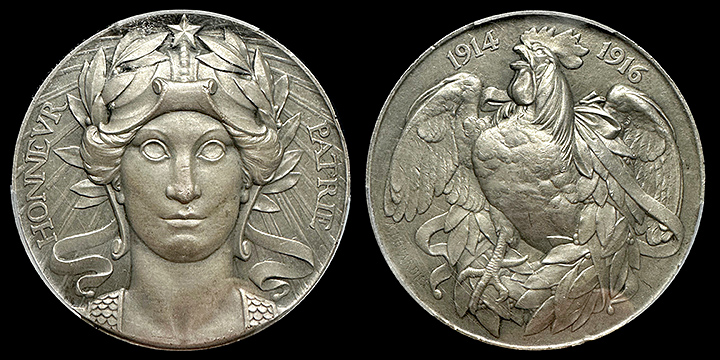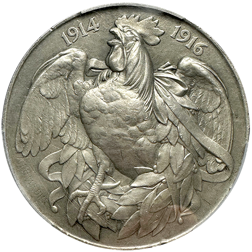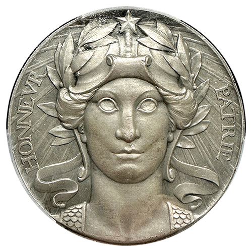 With a meticulously crafted design and a certified SP63 grade from PCGS, this specimen medal stands as a testament to the sacrifices and triumphs of the French people during World War I. Its large size and exceptional condition make it a remarkable addition to any collection of military memorabilia or numismatic treasures.