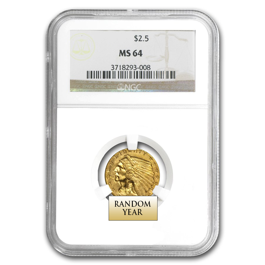 $2 ½ Indian Head Gold Coins were struck in Philadelphia and Denver. There are a total of 15 coins in the program with a combined mintage of 7,250,261. Grading standards for these $2 ½ Indian Heads are: About Uncirculated (AU, Trace of wear & blemishes) Each coin contains .12094 ounces of pure gold, they will have a range of dates. Give us a call at 1-800-928-6468 if you need help finding a coin so our Rare Coin Specialists can help assist you.