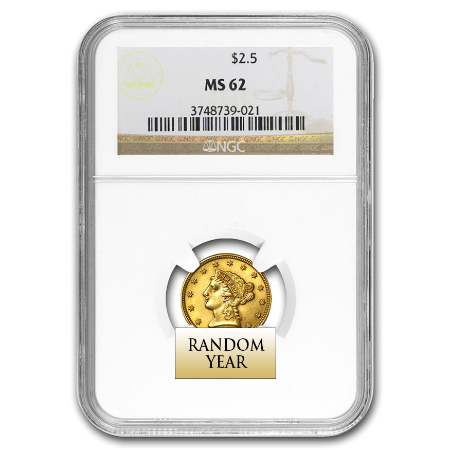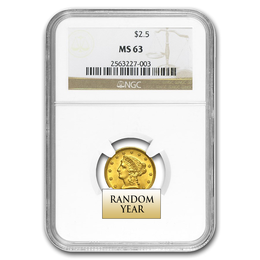 Grading standards for these $2 1/2 Liberty Heads are: About Uncirculated (AU, Trace of wear on coronet and hair above ear.) Each coin contains .12094 ounces of pure gold, they will have a range of dates. There are a total of 46 coins in the program with a combined mintage of 11,920,174.