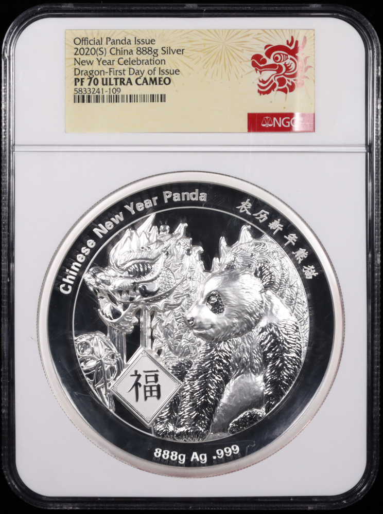 2020 China 888 Gram Silver New Year Panda Dragon NGC PF-70 Ultra Cameo