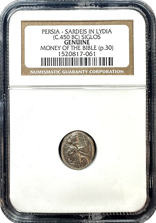 This Siglos, minted around 450 BC in Sardeis, Lydia, during the height of the Achaemenid Persian Empire, is one of the earliest coins mentioned in the Bible. These silver coins were used in transactions across the Persian Empire and are thought to have been referenced in Nehemiah 5:15. The Siglos would have been handled by people living during the time of Ezra and Nehemiah, adding an incredible layer of authenticity to this piece of ancient currency.