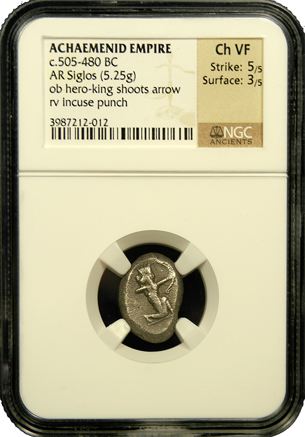 This Achaemenid Silver Siglos Type 2 has been graded by NGC Ancients with a Strike rating of 5/5 and a Surface rating of 3/5. The coin's exceptional strike quality and well-preserved surface make it stand out. The NGC certification guarantees the authenticity and condition of the coin, providing assurance to collectors.