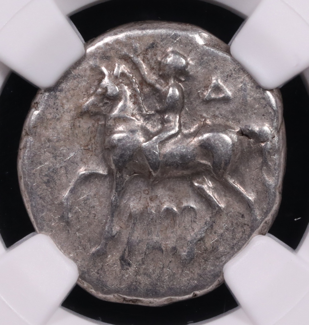 c. 280-240 BC Calabria Taras Silver Didrachm NGC Choice Very Fine