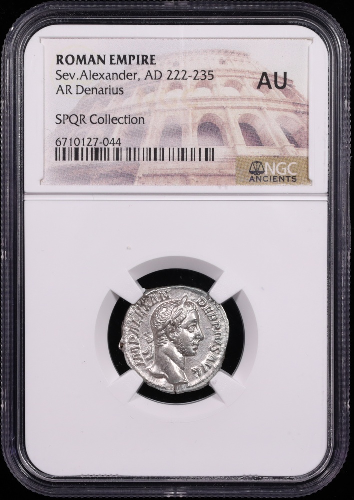 AD 222-235 Roman Empire Severus Alexander Silver Denarius NGC About Uncirculated
