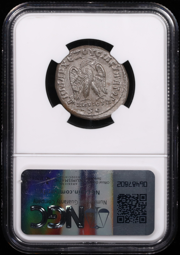 Philip I, known as Philip the Arab, ruled the Roman Empire from AD 244 to 249 during one of the most tumultuous centuries in Roman history. Born in Shahba in the province of Arabia Petraea, he rose to power as Praetorian prefect under Gordian III before ascending to the imperial throne. This billon tetradrachm was struck at Antioch, the important provincial mint in Syria that served as a gateway between Roman and Eastern commerce. The coin is certified by NGC Ancients with an Extremely Fine grade.