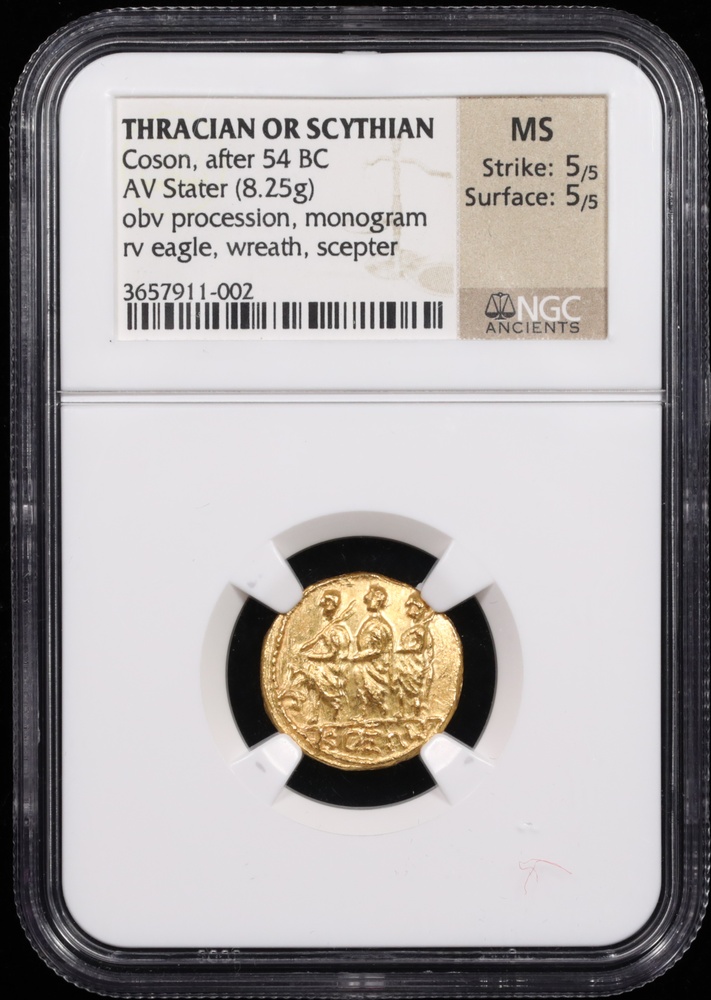 After 54 BC Thracian or Scythian Coson Gold Stater NGC Mint State 5x5