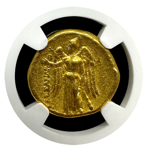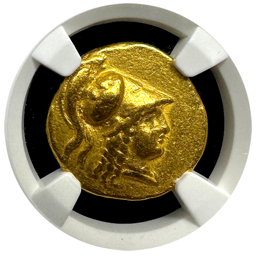 Behold the exquisite Kingdom of Macedon, Alexander III Gold Stater! This magnificent coin, minted during the lifetime to early posthumous period of Alexander the Great, captures the essence of a legendary era. Weighing 8.57 grams, this gold stater showcases the remarkable craftsmanship of ancient Macedonian coinage.