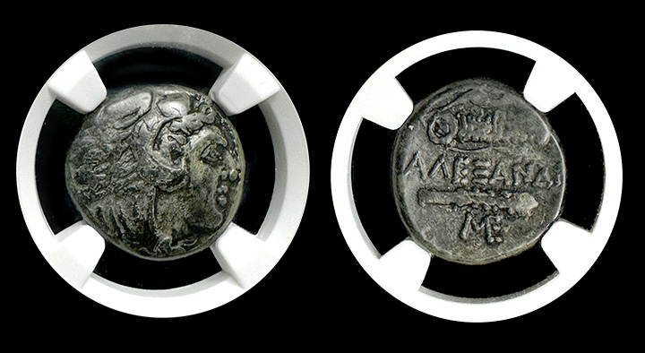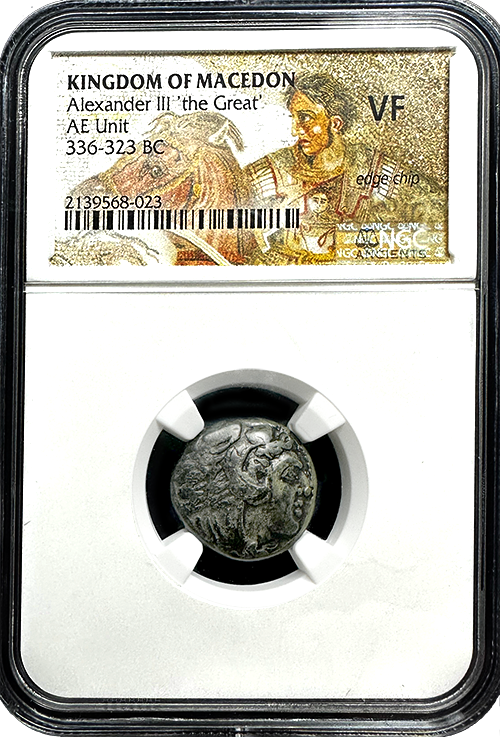 Behold the historical significance and enduring legacy of an Alexander III AE Unit, minted during the years 336-323 BC, a remarkable relic from the age of Alexander the Great. This ancient coin, certified by NGC as Very Fine, bears witness to a pivotal period in history when Alexander's conquests reshaped the known world.