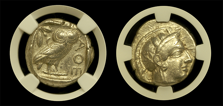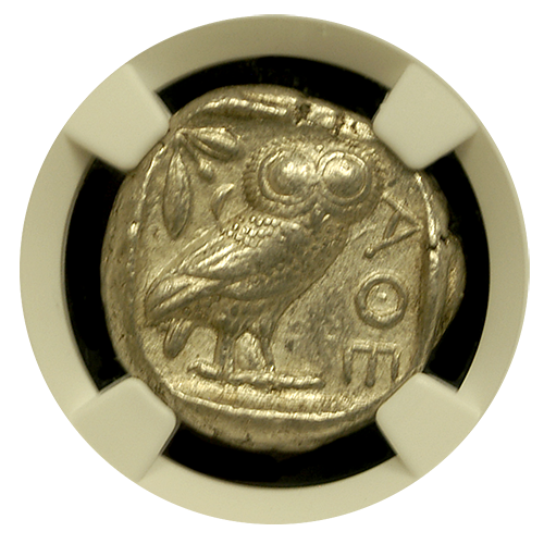 In the book entitled, The 100 Greatest Ancient Coins, the #10 highest ranked coin is the Athenian Silver Tetradrachm, commonly known at the Attica Silver Owl. Struck over 2,400 years ago, these large 17 gram silver coins are each one of a kind and depict the goddess Athena on the obverse and an owl on the reverse. These coins were extensively circulated across the ancient empires for hundreds of years.