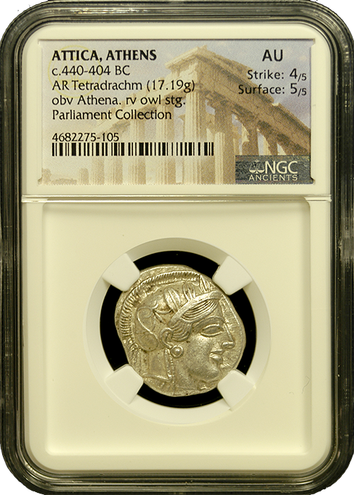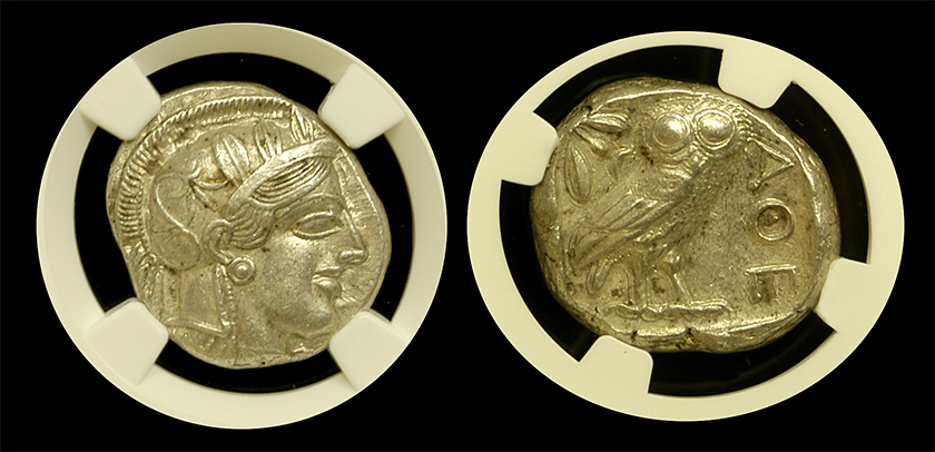 In the book entitled, The 100 Greatest Ancient Coins, the #10 highest ranked coin is the Athenian Silver Tetradrachm, commonly known at the Attica Silver Owl. Struck over 2,400 years ago, these large 17 gram silver coins are each one of a kind and depict the goddess Athena on the obverse and an owl on the reverse. These coins were extensively circulated across the ancient empires for hundreds of years.