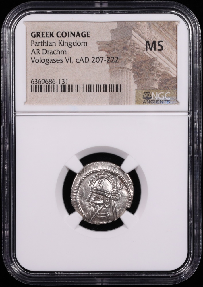 c. AD 207-222 Parthian Kingdom Vologases VI Silver Drachm NGC Mint State