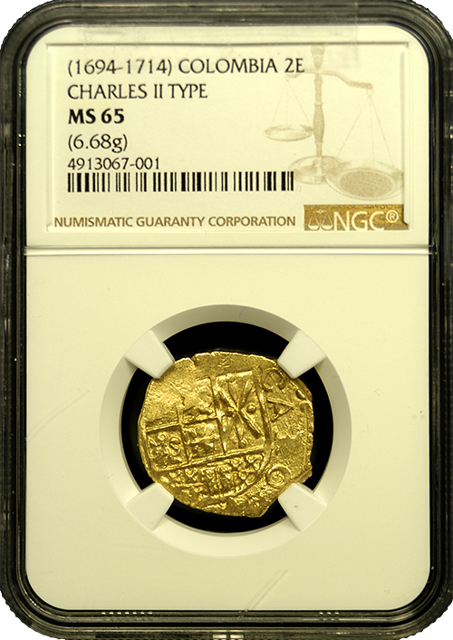 Colombian Gold Two Escudo NGC (1694-1714) MS-65