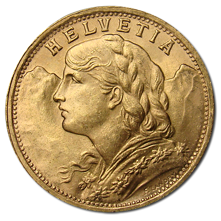 Known as “Euro-Gold” for short, this sub-segment of the gold bullion market features coins made across Europe from the mid-1800’s through the mid-1900’s. The most popular European Gold Coins include British Sovereigns and 20 Francs from France and Switzerland.