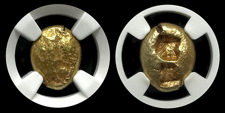Reverse - Iconic Incuse Punches: On the reverse, two bipartite incuse punches are deeply impressed into the metal, characteristic of early electrum coins from Ionia. The precise symbolism of these punches remains a subject of debate among scholars, contributing to the coin's historical fascination.
