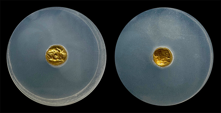 Coin shown is the exact coin you will receive. Only a handful of these ancient gold coins are known in any condition.