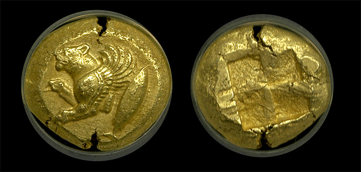 This particular example is 2,500 years and is the highest graded example we have seen of a winged lion. Lions were often depicted in the earliest coinage, however, this is the first we have seen with wings. Coin shown is the exact coin you will receive. Great coin for the price and one of the earliest coins you will ever encounter.