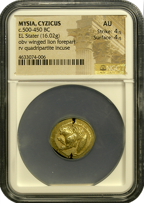 Winged Lion of Cyzicus Electrum Stater NGC AU 4x4