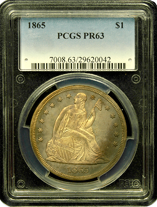 1865 Proof Liberty Seated Silver Dollar