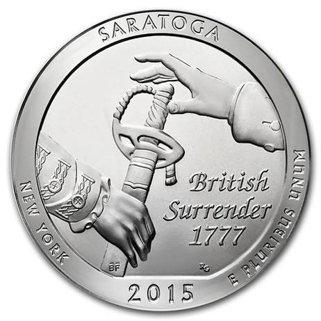 In Autumn of 1777, American forces met, defeated, and forced a major British army to surrender at Saratoga, NY. The crucial American victory at the battle of Saratoga renewed patriots' hopes for independence, secured foreign support, and forever changed the face of the world. This historic event is celebrated on the latest America the Beautiful 5 ounce silver coin.