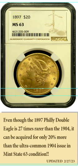 Check out our latest information on a specific segment of the $20 Liberty Head market, particularly coins in Mint State 63 condition from harder-to-find dates in the late 1890s, and why they're our top recommendation in today’s gold market.
