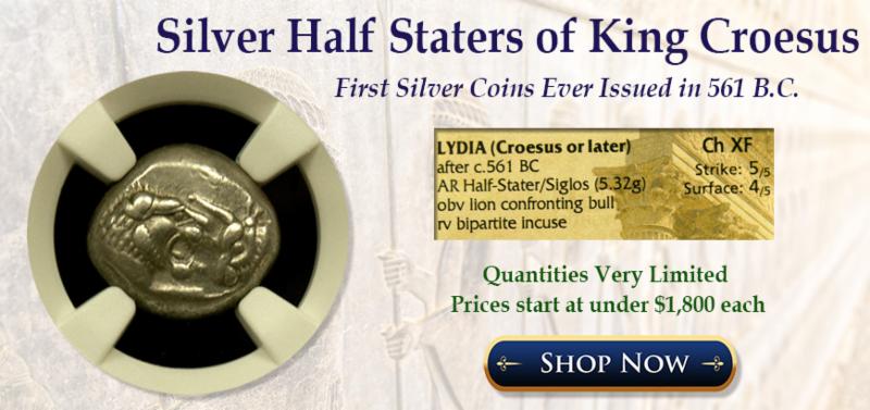 Austin Rare Coins & Bullion is pleased to announce the release of a small group of silver half-staters issued in 561 B.C.- the FIRST silver coins issued in human history!