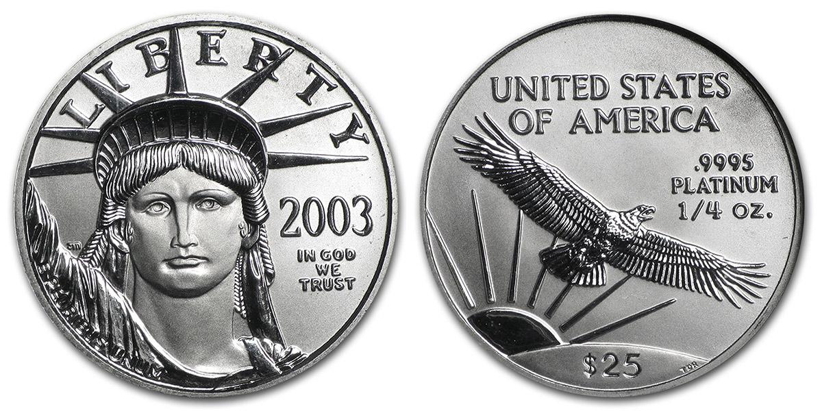 Perfect, Mint State 70 1/4 Oz. Platinum Eagles from 2003 and 2004 for just $389 each
