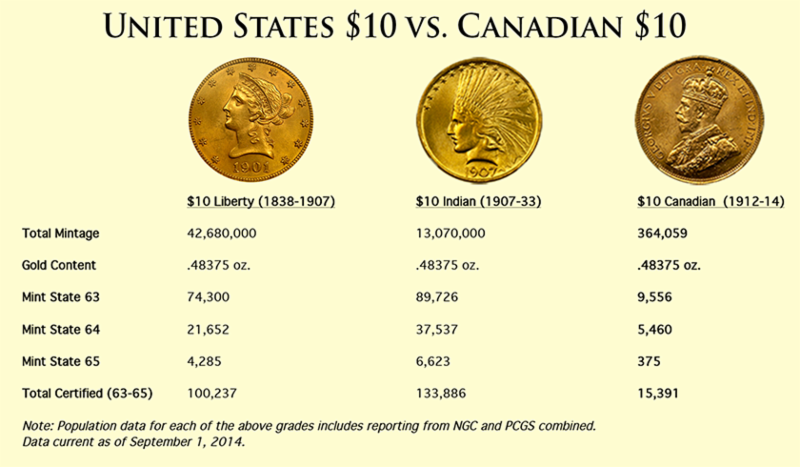 The $10 Canadians are already over six times more rare than their U.S. counterparts and, now that the meltdown has occurred, their rarity will forever be protected!