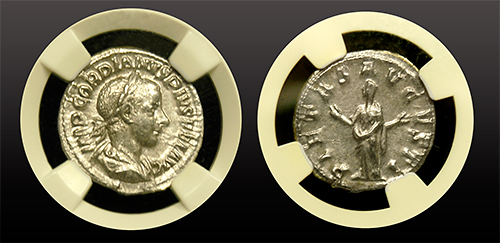 Roman Gordian Iii Silver Denarius NGC Extremely Fine
