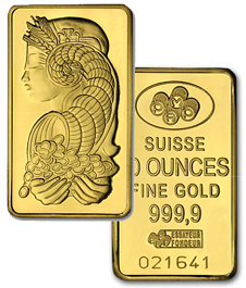 One ounce Swiss Pamp gold bars offer investors an extremely convenient and portable way of owning gold bullion. Swiss Pamp gold bars are refined to the highest standards of 99.99% fine gold. Each PAMP gold bar contains one ounce of pure, 24 karat gold and has the exact purity and weight stamped on each gold bar.