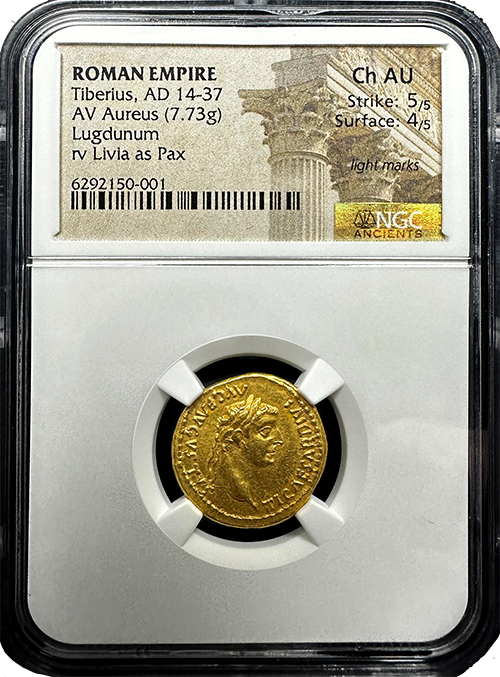 Tiberius Gold Aureus NGC Ch AU 5x4