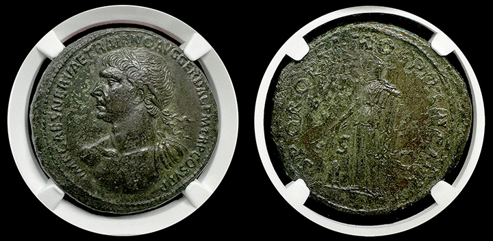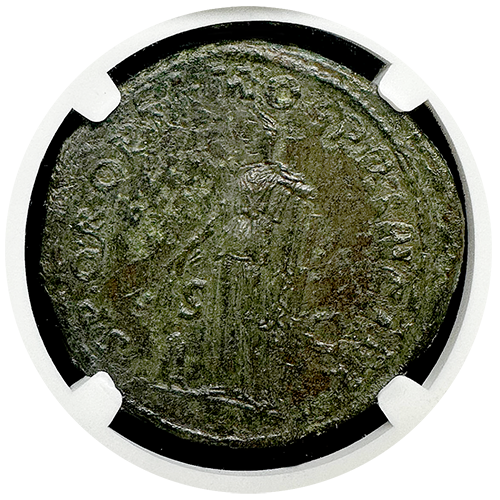 Enountering high-end Roman Bronze coins such as this is a seldom occurence, as they were coins used by the commoners and most were circulated, lost, or destroyed over time due to corrosion. This fine style example is simply exquisite and incredibly rare in any condition.