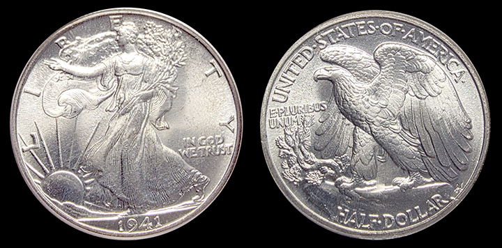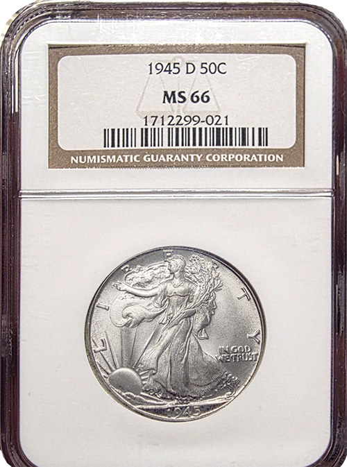Superb-Gem quality Walking Liberty Half Dollars from the World War II era are absolutely beautiful US silver coins. Certified by wither NGC or PCGS in Mint State 66 condition, they display exceptional quality with brilliant luster, sharp details, and outstanding eye appeal.